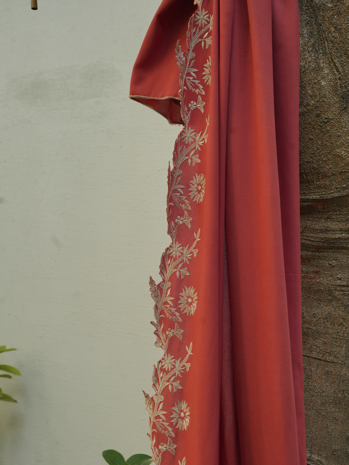 Linen coral colored dupatta with embroidery details